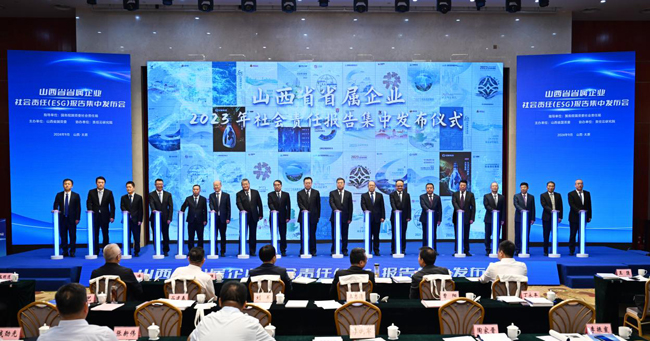 9月14日上午,由国务院国资委社会责任局指导,山西省国资委主办的山西省省属企业社会责任(ESG)报告集中发布会在太原召开。省政府副秘书长曹荣湘,国务院国资委社会责任局副局长张晓松,省国资委党委书记、主任王文保作主题致辞。航产集团党委书记、董事长陈阳,党委委员、副总经理员佩刚出席发布会。来自国务院国资委、中国社科院、省属企业、地市国资委、权威媒体的有关领导和专家学者齐聚一堂,共话国资国企履责新担当新作为,聚力国资国企发展开新局谱新篇。