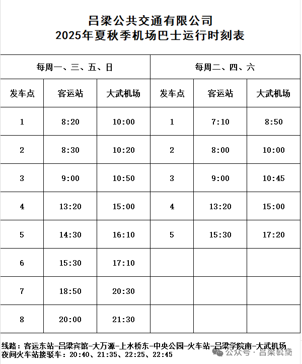 因换季后航班时间变化,2025年3月30日起,旅客班车发车时间有所调整,具体如下: